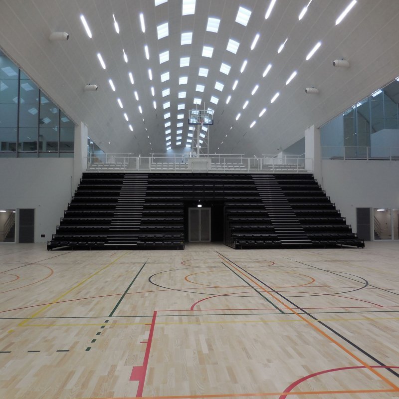 Feste, teleskopische (oder aussiehbare), mobile Tribünen für Theater, Kultur- und Mehrzweckhallen, Sporthallen und Sportarenen, Auditorien für Unternehmen und Bildungseinrichtungen.