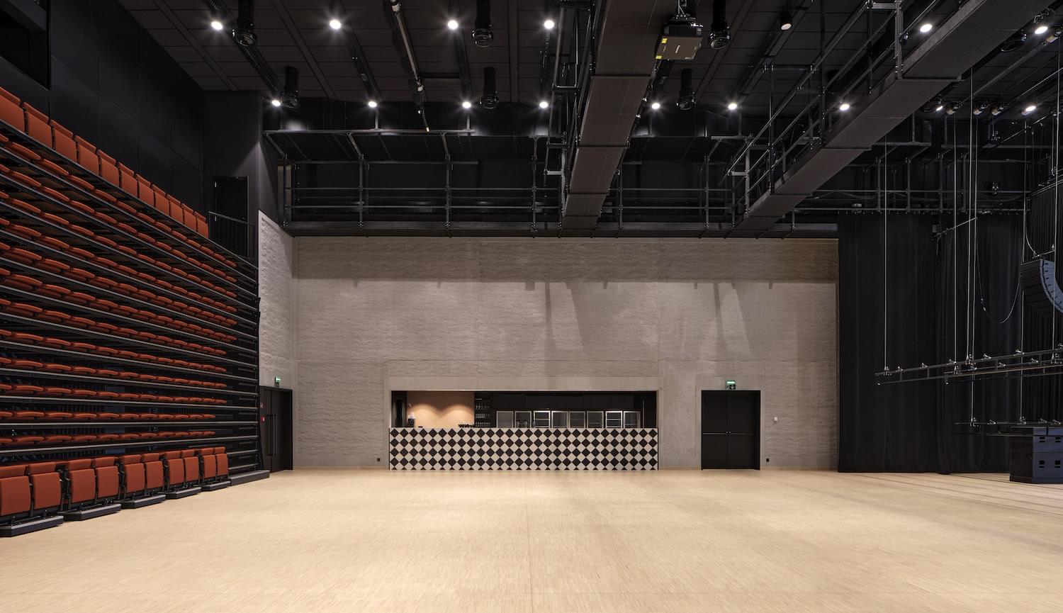 The community of Kapellen in Belgium awarded us with the order for engineering, production and installation of the retractable grandstand in the new cultural centre. The design of the building is from Met Zicht op Zee Architects in Antwerp, Cordeel Temse nv is the main contractor of the site.